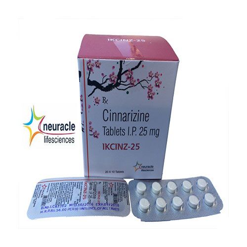 IKCINZ-25 consists of Cinnarizine Tablets that are linked with a class of medications known as antihistamines and are commonly used to treat the issue of motion sickness that is nausea which is faced due to motion that may take place while traveling in a moving vehicle like car, bus. Problems such as vertigo (spinning sensation or dizziness), or Meniere’s disease (problems with balance are also solved by using Cinnarizine Tablets. These tablets work by preventing the constriction of blood vessels of the inner ear which then acts very well to improve the microcirculation of the ear.